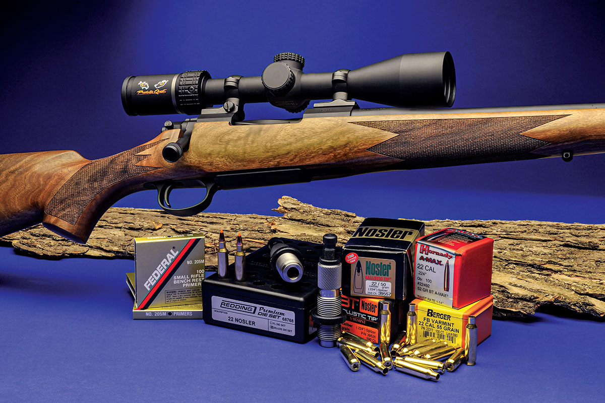 With my pile of components growing and with the rifle arriving, I was ready for some handloading. Checking the water capacity of the 223 Remington as compared to the 22 Nosler, I found the latter has about a 25 percent more capacity, which should put it ahead of the 223 and slightly below the 22-250 Remington with the right powder and bullets seated to the respective lengths. According to Nosler data, with a 40-grain bullet seated in the case, it will take 35.9 grains of water. With a more popular 50-grain bullets, it took 33.7 grains with Nosler bullets seated to 2.260 inches.