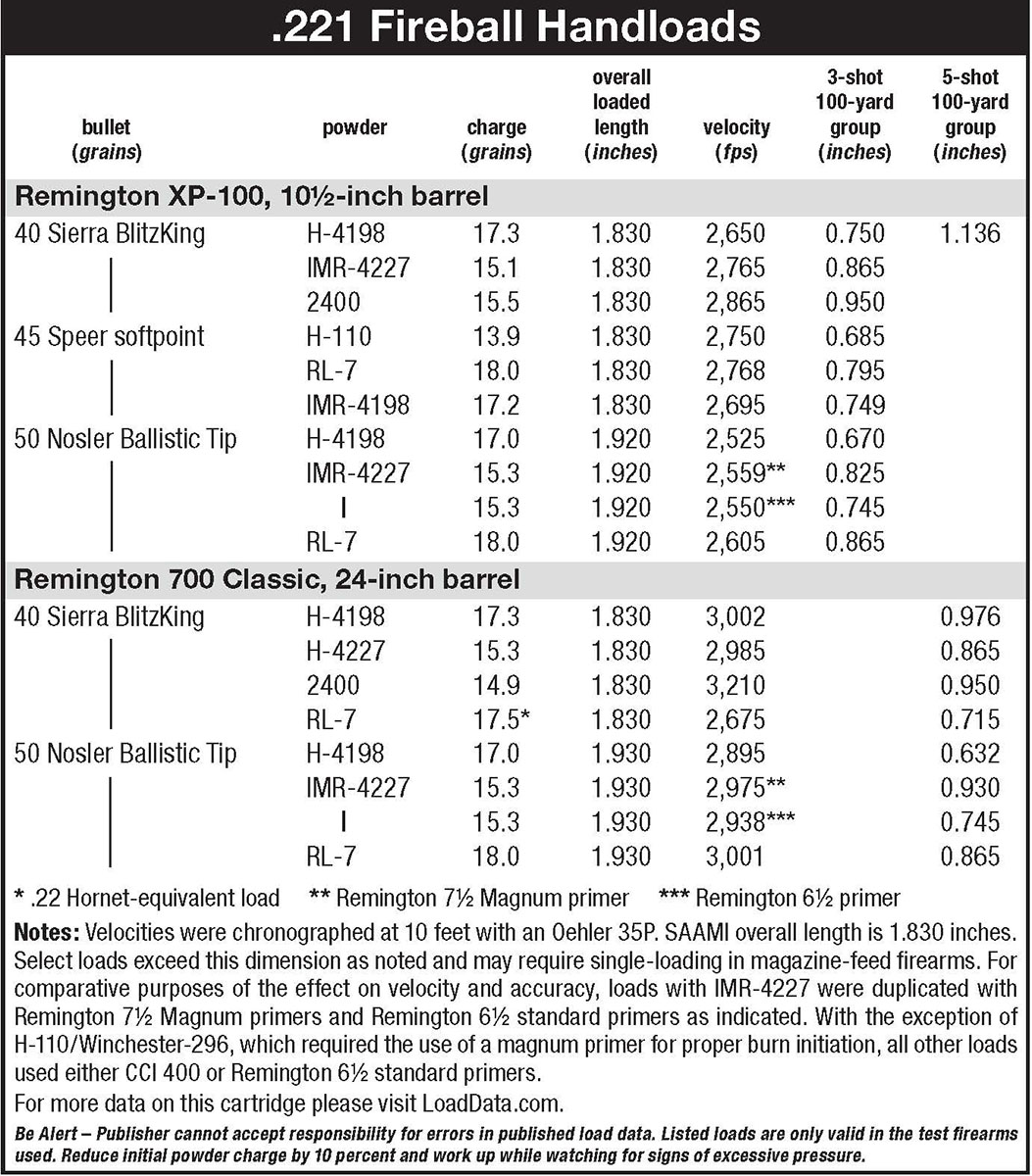 The current fashion dictating the use of the small rifle magnum-type primers when handloading the 221 Fireball and its sibling, the 222 Remington, finds these cartridges “guilty by association” and needs to be clarified, but that is for an article at another time. Suffice to say, regular small rifle primers have, and continue to be used successfully in handloading these cartridges, given the correct selection of propellant. This is often resulting in better accuracy than if a magnum-type primer is used.