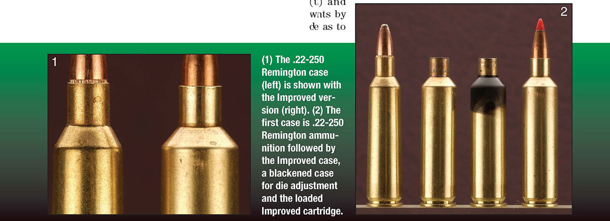 The other requirement is that they have a shoulder angle of 40 degrees, which adds to the controllability of brass flow, eliminates body taper and shortens the case during the fireforming process. With standard handloading practices, you can expect to add about 10 percent more powder, and this is evident with both the factory and wildcat 22-250.
