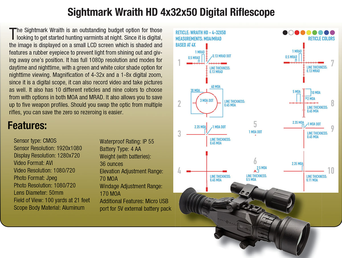 Hunting with this setup has been wildly successful, so long as you are diligent in your scanning the chances of something sneaking in on you is essentially zero. It has been wonderful in culling nocturnal coyotes that prey on sheep and cattle and it also has been a great setup for a second shooter as well. It is easy to use the Sightmark Wraith as it has only five buttons and a simple menu system. Most folks I take out can pick it up in a matter of minutes along with a brief explanation. Another advantage to digital night vision compared to traditional night vision is the fact that it can be zeroed during the day. Since it does not use an intensifier tube, there are no worries about burning up the tube in the bright light of day. Zeroing the optic is a straightforward process. Shoot a group and adjust the crosshair from the group to the point of aim and you are zeroed. It is a little different than the clicks of a riflescope, but it is quite easy to accomplish.