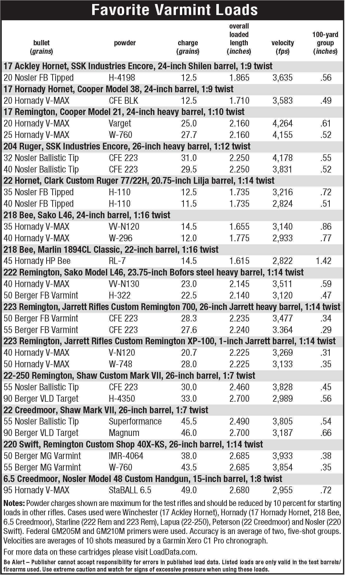 When selecting .22-caliber centerfire cartridges for the battery, the 22 Hornet has always been, and always will be, a good place to start. This one built years ago by Jim Clark, Jr. of Clark Custom Guns on a tuned Ruger 77/22H action is the most accurate rifle of its caliber that Layne has shot. It has a fairly heavy Lilja barrel with a 1:14 twist.